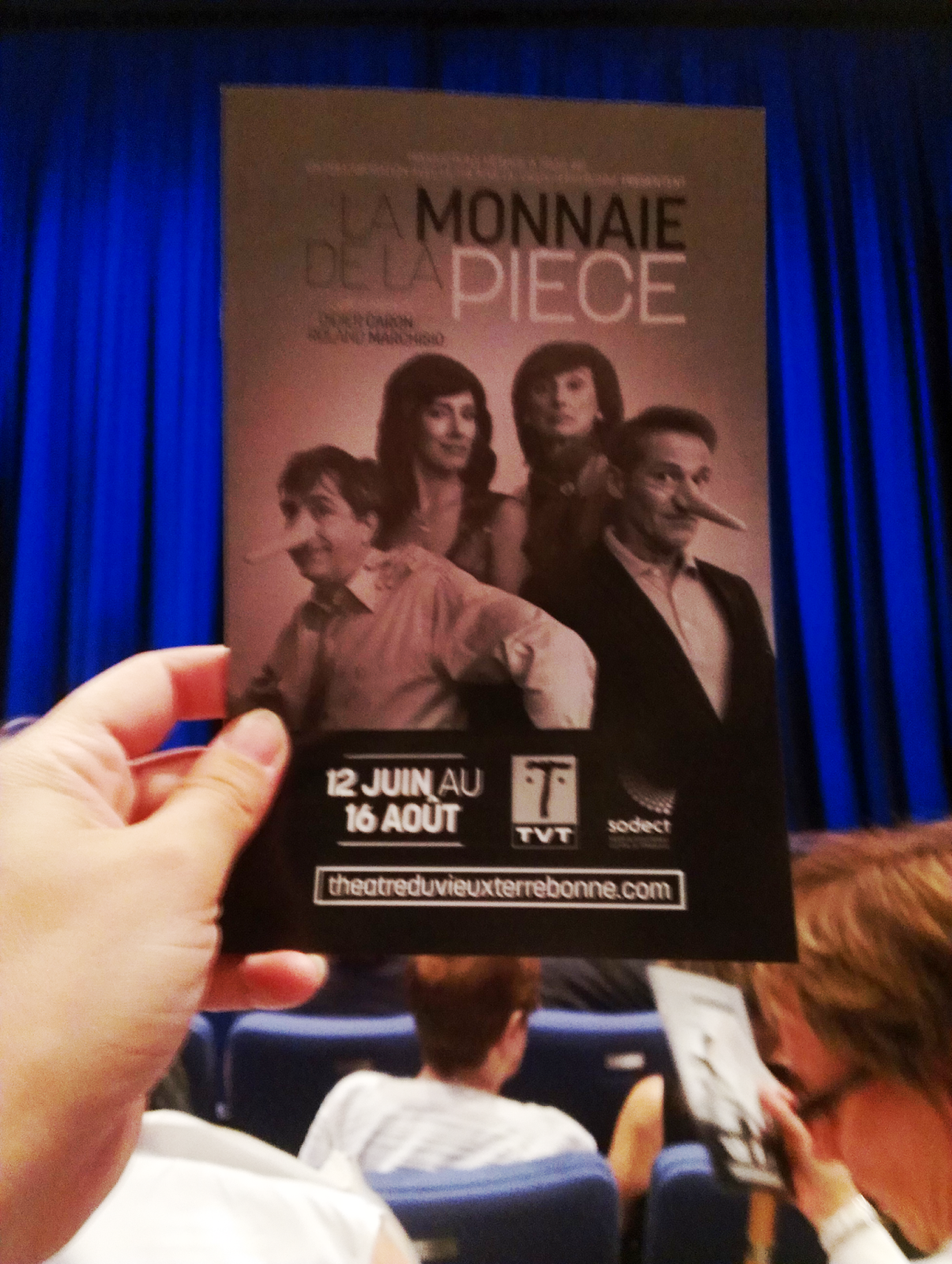 J’ai eu la chance d’assister hier à la représentation de La monnaie de la pièce, présentée tout l’été au Théâtre du Vieux-Terrebonne et j’ai eu envie de lever le rideau sur cette comédie pour vous faire part de mon appréciation.
